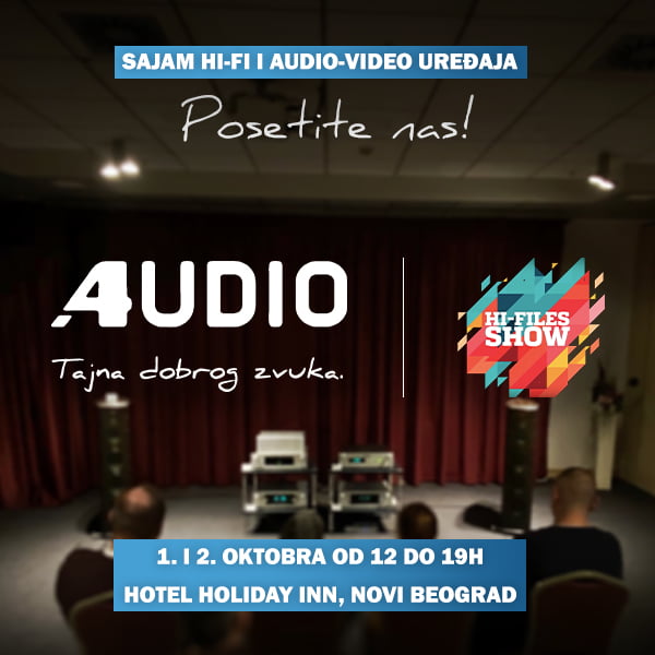 4Audio posle trogodišnje pauze sa zadovoljstvom priprema učešće na ovogodišnjem Hi-Files sajmu koji se održava 1. i 2. oktobra od 12 do 19h u Holiday Inn-u na Novom Beogradu. Tradicionalno, u glavnim salama Gračanica i Ravanica, ove godine biće izloženo mnoštvo noviteta najpoznatijih svetskih proizvođača. Hit sajma će svakako biti EISA nagrađeni uređaji poput Sonus faber Omnia wireless zvučnika, Devialet Dione saundbara, Roksan Attessa stereo pojačala i Thorens TD1500 gramofona. Pored njih biće izloženi široki asortiman firmi Audioquest, Bluesound, Bose, NAD, Sennheiser, Technics i Triangle. Monitor Audio predstavlja Silver seriju 7G, a Canton modele više klase iz serija Vento i Townus. Premijerno, naša publika moći će da čuje sisteme koje čine jubilarni model firme PSB, model Passif 50 u kombinaciji sa NAD C658/C298 pojačalom, Sonus faber Lumina V zvučnici sa NAD M10V2 pojačalom i Triangle Antal 40th anniversary sa Roksan Attessa pojačalom. Novitet sajma su i portabl uređaji britanske firme iFi, novog brenda u našoj ponudi. Dobro došli na sajam!