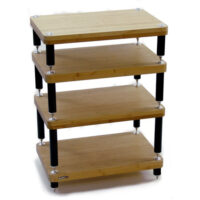 Svi Evoque Eco modularni nosači imaju karbonizirani bambus od 40 mm sa izborom između tri zamenljive visine stalaka (145 mm, 195 mm i 245 mm) koje mogu da podrže opremu do 30 kg po nivou. Stalci visokog sjaja su obloženi crnim prahom postavljene na module polica opremljene su dvostrukim A.S.I.S.T (Atacama Sonic Isolation Sistem Technology) prigušnim zaptivkama i klinovima od ugljeničnog čelika sa aluminijumskim komponentama za uzemljenje za vazduhoplovstvo usklađenim sa potpuno podesivim niklovanim čeličnim šiljcima od 8 mm. Ove komponente su dizajnirane da priguše i zatim omoguće da se rezonanca zaostale visoke frekvencije kanališe dalje od podržanih AV komponenti, što im omogućava da isporuče maksimalne performanse. Atacama karbonizovani bambus visoke gustine daje značajne glavne zvučne kvalitete u poređenju sa tradicionalnim tvrdim drvetom i furniranim nosačima, sa svojom jedinstvenom strukturom pora mikro rasta koja nudi odlično apsorbovanje vibracija i svojstva kontrole rezonancije. Proizvodni procesi, nanošenje slojeva, gustina i ukupna debljina su posebno odabrani da daju najbolje moguće akustičke rezultate. Međutim, imajte na umu da je bambus prirodan materijal i da će postojati varijacije u boji, posebno ako se naknadno doda dodatni modul polica. Svaki bambusov modul je odabran, isečen, završen i pripremljen ručno u fabrici Atacama u Velikoj Britaniji, tako da daje moderan, moderan izgled. Može se koristiti bilo koji broj modula pod uslovom da maksimalna ukupna visina stalaka ne prelazi 1255 mm.
