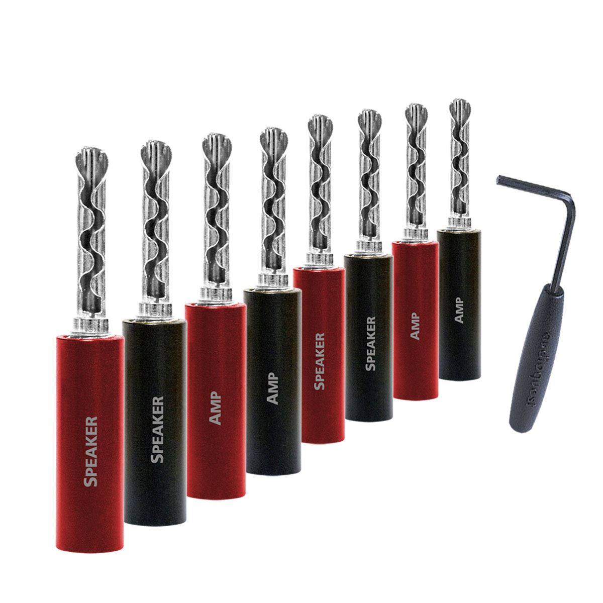 Koristite AudioQuest SureGrip 100 Banana konektore za stvaranje sigurnog i veze visokih performansi između vašeg zvučničkog kabla i zvučnika. AudioQuest koristi visokokvalitetni berilijumski bakar kao osnovni materijal, koji je jači, provodljiviji i zvuči bolje od uobičajenog fosfor-bronza koji se koristi u većini konektora. Direktno pozlaćivanje/srebro-plating izgleda odlično i izbegava zvučno štetne posredničke slojeve lošijeg metala. Uključeni mini ključ omogućava jednostavno i sigurno povezivanje bez potrebe za štetnim lemljenjem. Goli zvučni kablovi su neuredni i nepouzdani. Kompatibilni su sa univerzalnim zvučnim terminalima i kablovima do 6 mm², a AudioQuest SureGrip 100 konektori pružaju čist i gotov izgled uz obezbeđivanje izvrsnih zvučnih performansa.