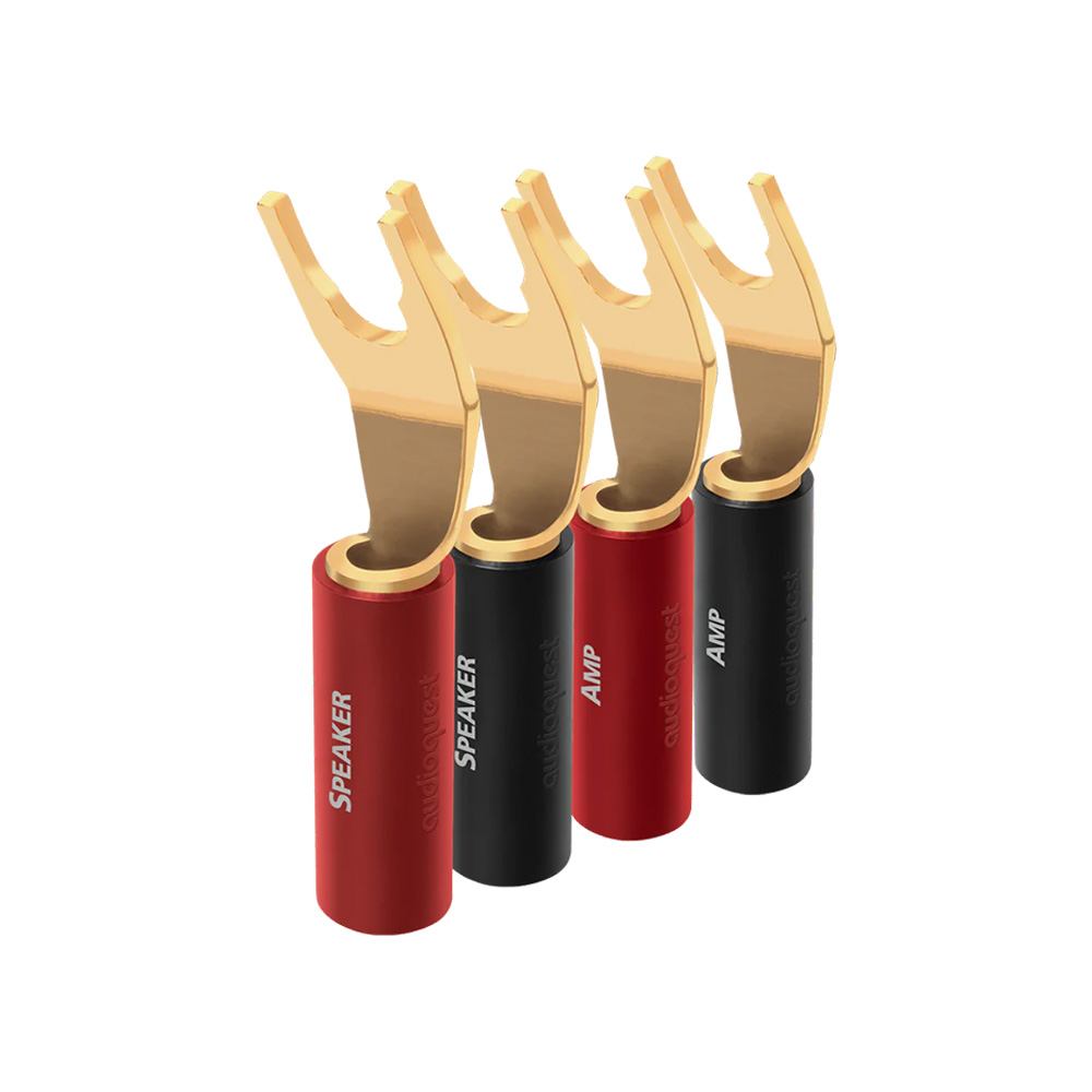 Koristite AudioQuest SureGrip 300 Banana konektore za stvaranje sigurnog i veze visokih performansi između vašeg zvučničkog kabla i zvučnika. AudioQuest koristi visokokvalitetni berilijumski bakar kao osnovni materijal, koji je jači, provodljiviji i zvuči bolje od uobičajenog fosfor-bronza koji se koristi u većini konektora. Direktno pozlaćivanje izgleda odlično i izbegava zvučno štetne posredničke slojeve lošijeg metala. Uključeni mini ključ omogućava jednostavno i sigurno povezivanje bez potrebe za štetnim lemljenjem. Goli zvučni kablovi su neuredni i nepouzdani. Kompatibilni su sa univerzalnim zvučnim terminalima i kablovima do 6 mm², a AudioQuest SureGrip 300 konektori pružaju čist i gotov izgled uz obezbeđivanje izvrsnih zvučnih performansa.