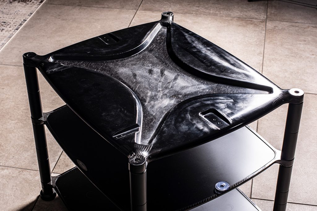 Strukturna polica gde su metalni delovi (nogare) direktno povezane sa ugljeničnom strukturom. Polica sa samo 2 mm debljine, ojačana monodirekcionim ugljeničnim vlaknima i strukturnim jezgrom kako bi se obezbedila visoka nosivost bez kompromisa. Gornja ploča je sendvič debljine 3 mm napravljen od pet materijala sa dva sloja aluminijuma unutra, laserski graviran radi dobijanja logotipa REVOLUTION X.