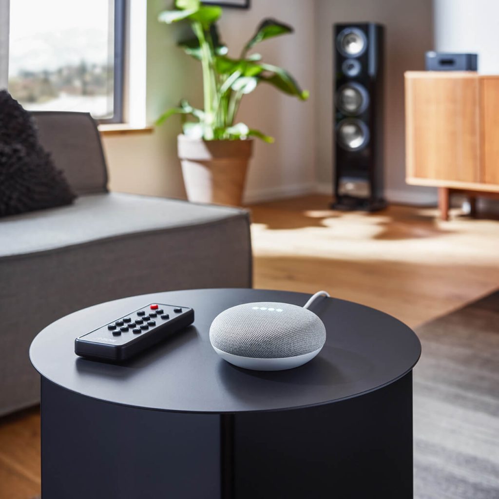 Pored manuelnog upravljanja putem Canton Smart aplikacije, možete takođe pokrenuti i pauzirati reprodukciju, prilagoditi jačinu zvuka ili kontrolisati ceo Canton Smart sistem glasom. Iako Smart Connect 5.1 nema ugrađene mikrofone, ovaj svestrani uređaj nudi maksimalnu kompatibilnost za glasovno upravljanje. Postoje dva načina za upravljanje Smart Connect 5.1 putem glasa: korišćenjem Siri ili Google Assistant glasovnih asistenata na vašem pametnom telefonu ili eksternom Apple ili Google uređaju po vašem izboru. Na taj način možete puštati omiljenu muziku jednostavnim dodirom dugmeta ili glasovnom komandom u bilo kojoj prostoriji koju želite.