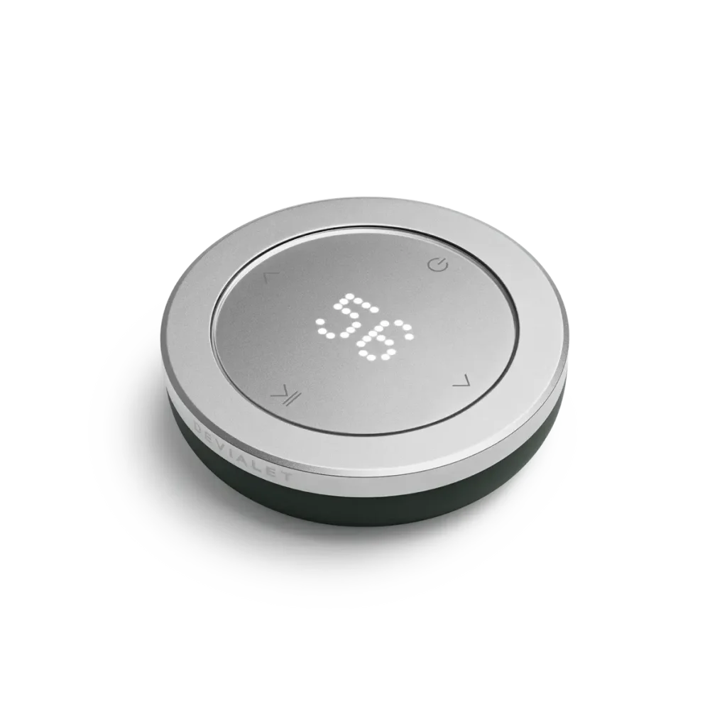 Za potpunu kontrolu na dohvat ruke, Devialet Phantom Ultimate 108 dB u kombinaciji sa Devialet Remote daljinskim upravljačem omogućava savršenu sinhronizaciju (kupuje se zasebno). Bilo gde da se nalazite, koristite daljinski za precizno upravljanje muzikom, filmovima i podkastima. Koristite stereo sistem? Daljinski se prilagođava vašim potrebama. Jedan je dovoljan da kontrolišete oba zvučnika, a više njih će se automatski međusobno sinhronizovati za neometano korišćenje.