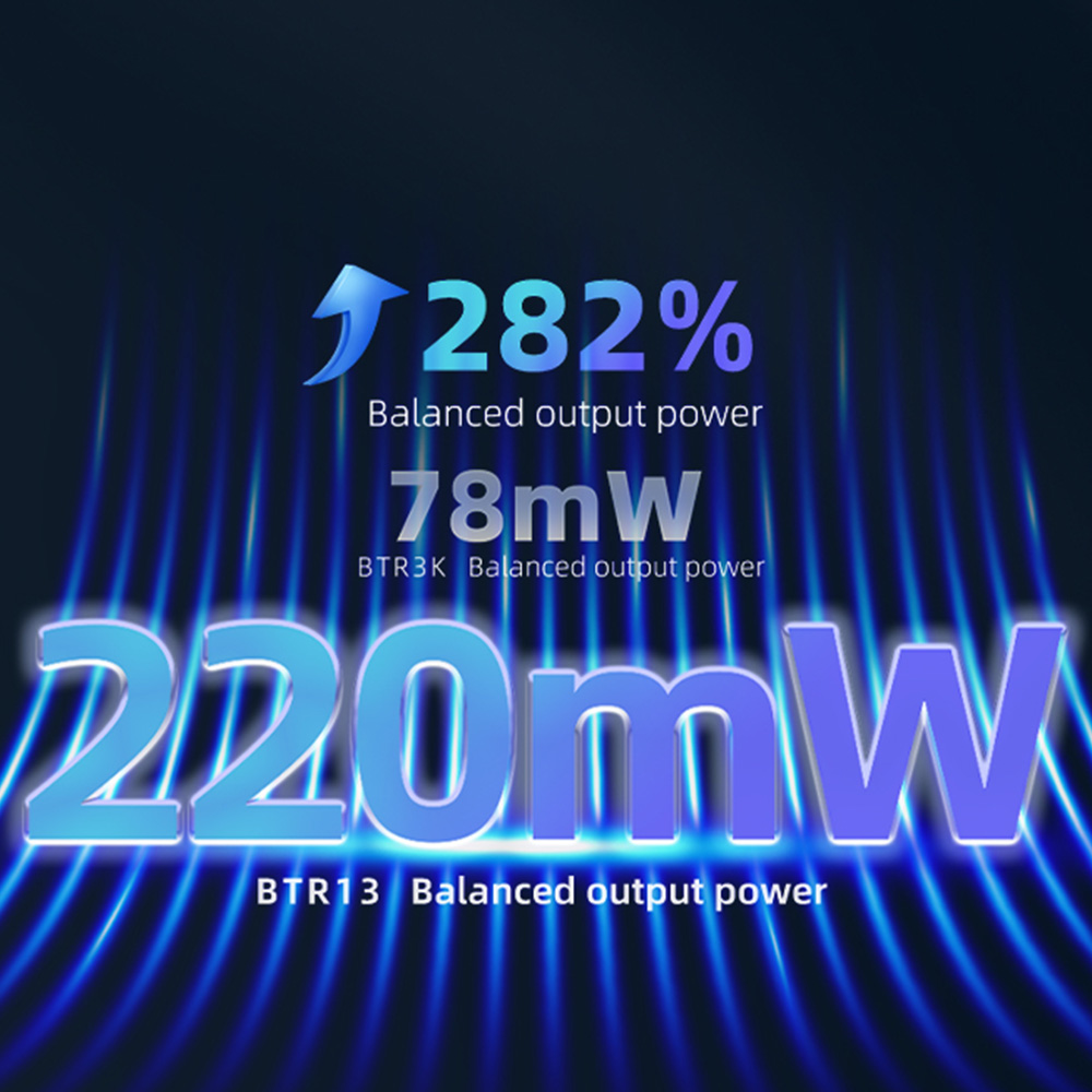 Nezavisni sistem napajanja, sa niskim nivoom šuma i sposobnošću za trenutnu visoku izlaznu snagu, dizajniran je specifično za ugrađeno pojačalo CS43131 DAC-a. Ovo značajno povećava balansiranu izlaznu snagu BTR13 za 282% u poređenju sa BTR3K, dostižući do 220mW - što ga čini potpuno sposobnim da zadovolji sve prenosive audio potrebe.