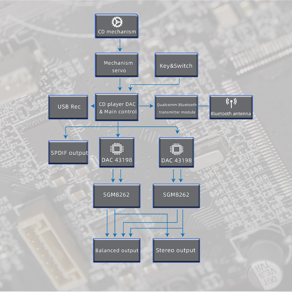 Za razliku od uobičajenih Bluetooth CD plejera, DM13 koristi Qualcomm Bluetooth platformu koja podržava visokokvalitetni Hi-Res Bluetooth audio sa aptX, aptX Low Latency, aptX HD kodecima, kao i standardnim SBC kodekom. Ova visokokvalitetna bežična transmisija značajno poboljšava zvuk sa Bluetooth izlaza prenosivih CD plejera.