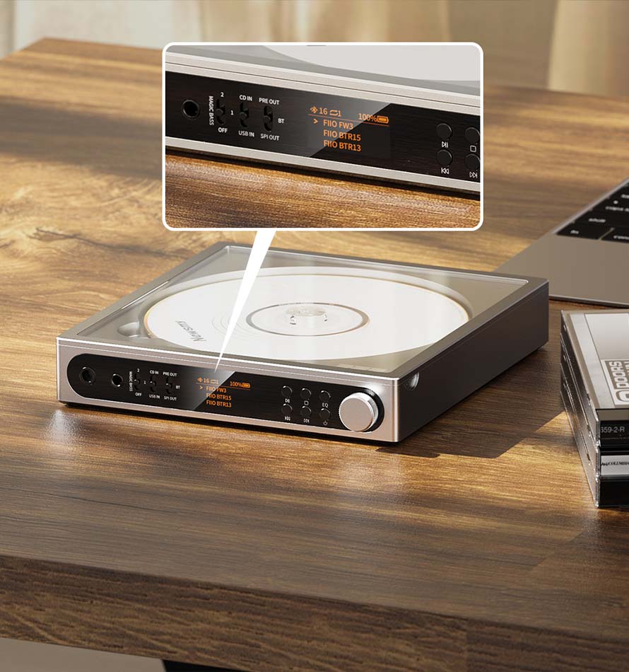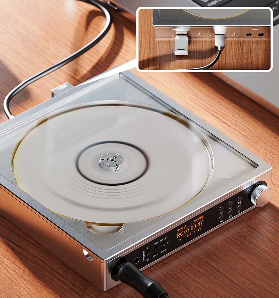 Uređaj kombinuje prenosivi CD plejer, Hi-Fi USB DAC, visokorezolucionu USB/CD Bluetooth transmisiju i USB/CD digitalni transport u jednoj jedinici – pružajući znatno veću svestranost i kompatibilnost u poređenju sa sličnim prenosnim CD plejerima.