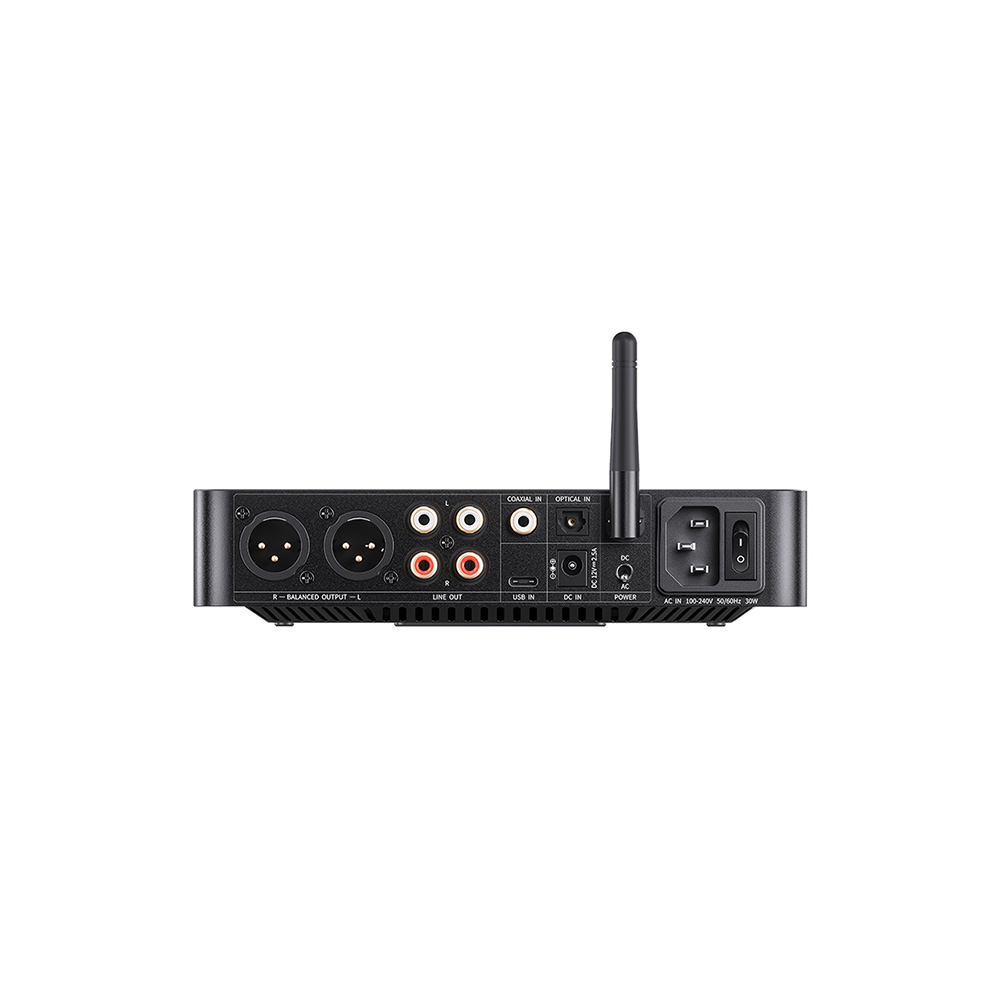Ugrađeno 30W prekidačko napajanje zaštićeno je kućištem od legure sa niklovanom zaštitnom oblogom, što značajno povećava otpornost na smetnje i obezbeđuje čistije napajanje. Pored toga, uređaj poseduje i spoljašnji DC ulaz, koji omogućava povezivanje sa linearnim napajanjem visokih performansi radi postizanja drugačijeg zvučnog karaktera.