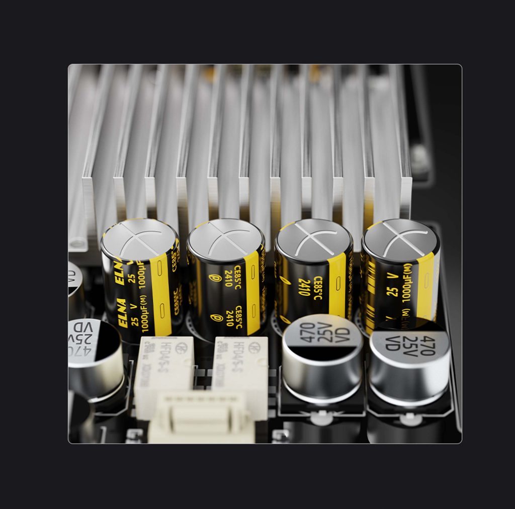 Vrhunski ELNA RA3 kondenzatori sa svilnim filmom i specijalizovani tantalum elektrolitski kondenzatori za audio primenu zajedno obezbeđuju čisto i stabilno napajanje uređaja, isporučujući topao i prirodan zvuk.