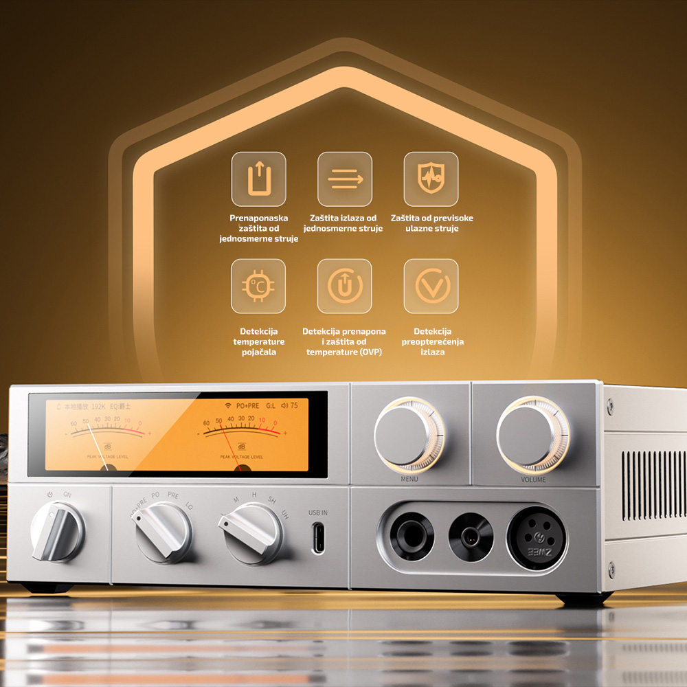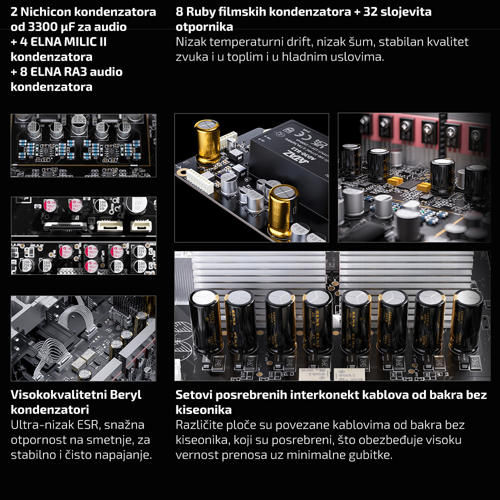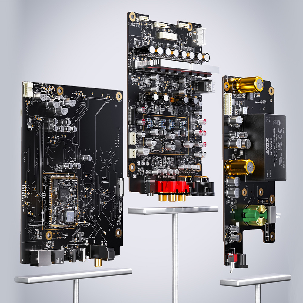 Unutrašnje napajanje, digitalni i analogni delovi nalaze se na odvojenim fizičkim pločama, što fizički sprečava preslušavanje kanala. Ovo efikasno obezbeđuje preciznost i očuvanje integriteta obrađenih audio signala, za čist i kvalitetan zvuk.