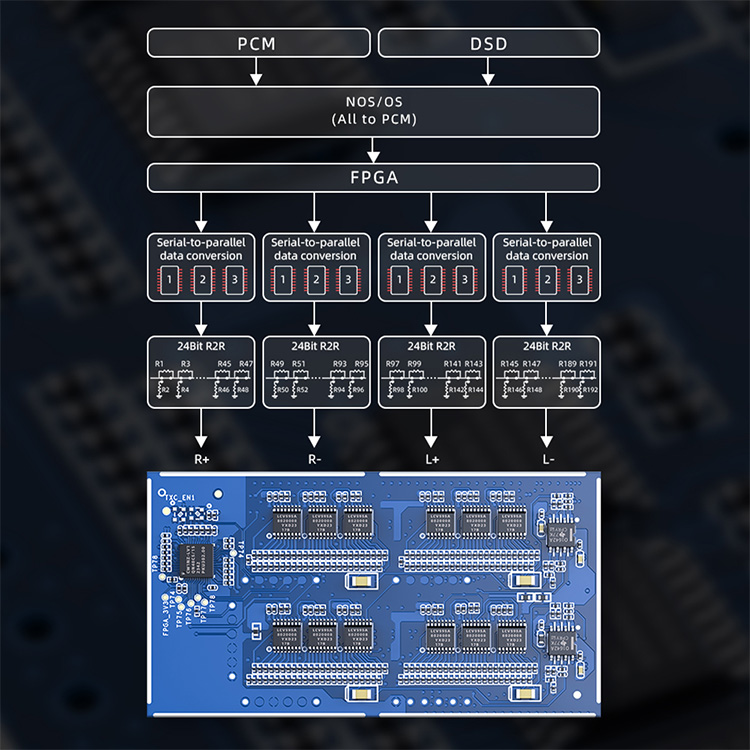 Zvezda celog sistema je FiiO-ov vlasnički, četvorokanalni potpuno diferencijalni 24-bitni R2R DAC, izrađen od ukupno 192 visokoprecizna tankoslojna otpornika (48 po kanalu) sa tačnošću od 0,1% i izuzetno niskim driftom od 30 ppm. Upravo on daje WARMER R2R uređaju njegov prepoznatljivo očaravajući zvučni karakter.