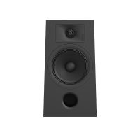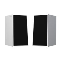 Zvučnik uključuje magnetnu zaštitnu mrežicu izrađenu od akustički neutralne tkanine koja ne utiče na tonalni balans. Kada je postavljena, kabinetska konstrukcija postaje minimalistički, monolitni blok. Trapezoidna geometrija kućišta tada je uokvirena crnom mrežicom koja ostavlja suptilan razmak od 10 mm oko ivice prednje ploče. Ovaj detalj dodatno naglašava dinamičan bočni profil zvučnika i priziva bezvremenski simbol harmonije – klasičnu liru – interpretiranu modernim, oštrim linijama.