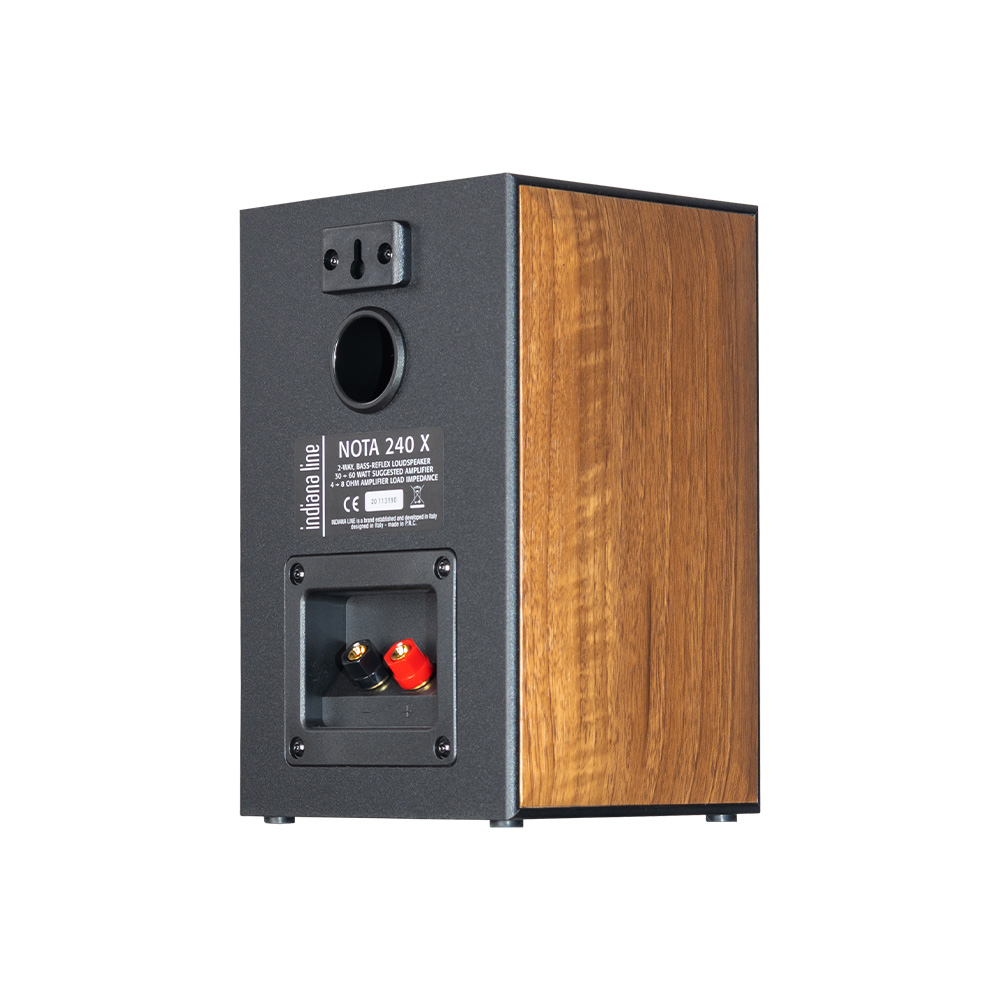 Indiana Line Nota 240 X predstavlja suštinu italijanskog dizajna i zanatske preciznosti u kompaktnom formatu. Elegantno oblikovane bočne stranice završene su izdržljivom i estetski dopadljivom vinil-folijom. Zvučnici su dostupni u dve boje – svetli orah i crni hrast. Sve to čini da Nota 240 X, pored toga što vizuelno oplemenjuje prostor, iznenadi slušaoca izrazito emotivnim i angažujućim zvukom sa visokim nivoom dinamike. Optimizovan proizvodni proces i pažljivo usklađene komponente omogućavaju da ova serija zvučnika u potpunosti dođe do izražaja.