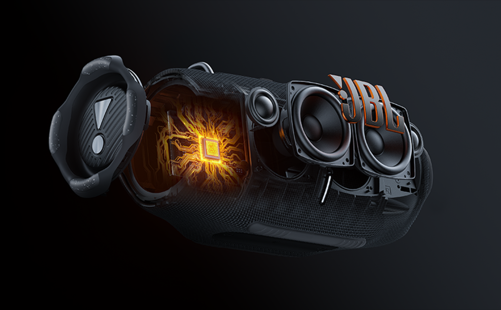 Dva vufera, dva snažna drajvera i dvostruka JBL pasivna bas membrana zajedno isporučuju dinamičan, prožimajući zvuk sa dubljim basovima i bogatim detaljima. Sa Xtreme 4 gde god da se nalazite, potpuno ćete se prepustiti muzici. AI Sound Boost analizira dolazni signal u realnom vremenu, istovremeno koristeći AI algoritam za predviđanje pokreta zvučnika i odziva snage. Maksimalno koristi mogućnosti drajvera, u potpunosti eksploatišući dinamički opseg za bolji i snažniji zvuk. Takođe smanjuje distorziju čak i pri velikoj jačini zvuka, maksimizujući bas i ukupnu glasnoću.