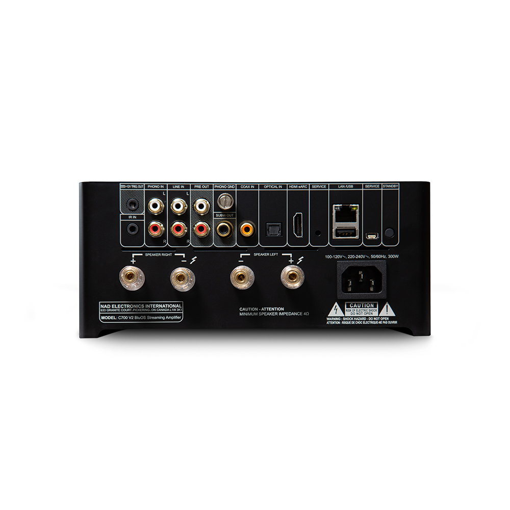Način na koji ljudi otkrivaju i doživljavaju muziku se duboko promenio. Današnji slušaoci mogu da strimuju muziku iz putem interneta, često uz bolji kvalitet zvuka nego što ga diskovi mogu pružiti. Bežični višekanalni audio omogućava slušaocima da uživaju u muzici širom svojih domova. U isto vreme, sve više slušaoca prihvata topao zvuk i kolekcionarsku vrednost vinila. NAD C 700 V2 BluOS striming pojačalo je kompaktno rešenje „samo dodajte zvučnike“ koje obuhvata sve mogućnosti savremene muzičke ere, nudeći vrhunsko pojačanje i brojna unapređenja u odnosu na originalni model, uključujući unapređeni DAC, MM gramofonsko pretpojačalo, Dolby Digital dekodiranje, opcionalnu Dirac Live korekciju prostora i uključenu IR daljinsku kontrolu.