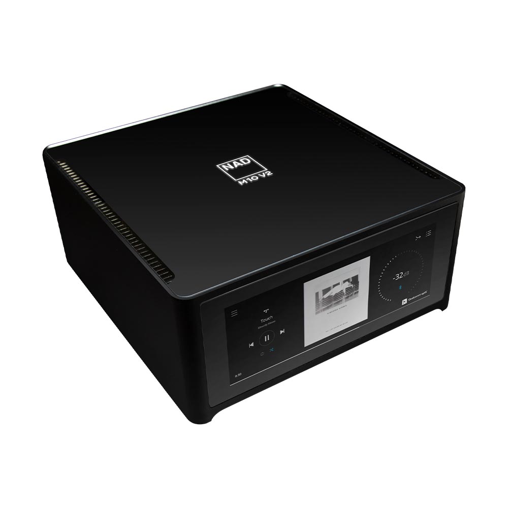 Kreiran od strane nagrađivanog dizajnerskog studija DF-ID, NAD M10 V2 ima čvrsto kućište od brušenog aluminijuma, Gorilla Glass gornje i prednje panele i 7" touchscreen, sa čistijim bojama i širim uglom gledanja nego ekran na originalnom M10. Iza tog prelepog ekrana krije se zvučna snaga koja pruža uzbudljive dinamike i izuzetne detalje. Baziran na poznatoj nCore tehnologiji, Hybrid Digital pojačalo M10 V2, konzervativno je ocenjeno na 100 W po kanalu. Njegovi ažurirani algoritmi pojačanja omogućavaju veće nivoe izlaza sa neefikasnim zvučnicima. Izlazi za sabvufer takođe imaju veće pojačanje, omogućavajući širi raspon kombinacija sabvufera i glavnih zvučnika. ESS Sabre DAC može prihvatiti strimove do 24-bit/192kHz. M10 V2 može strimovati lossless i zvuk visoke rezolucije sa servisa kao što su Deezer, Qobuz i Tidal; i ima punu MQA hardversku dekodirajuću i renderujuću sposobnost.