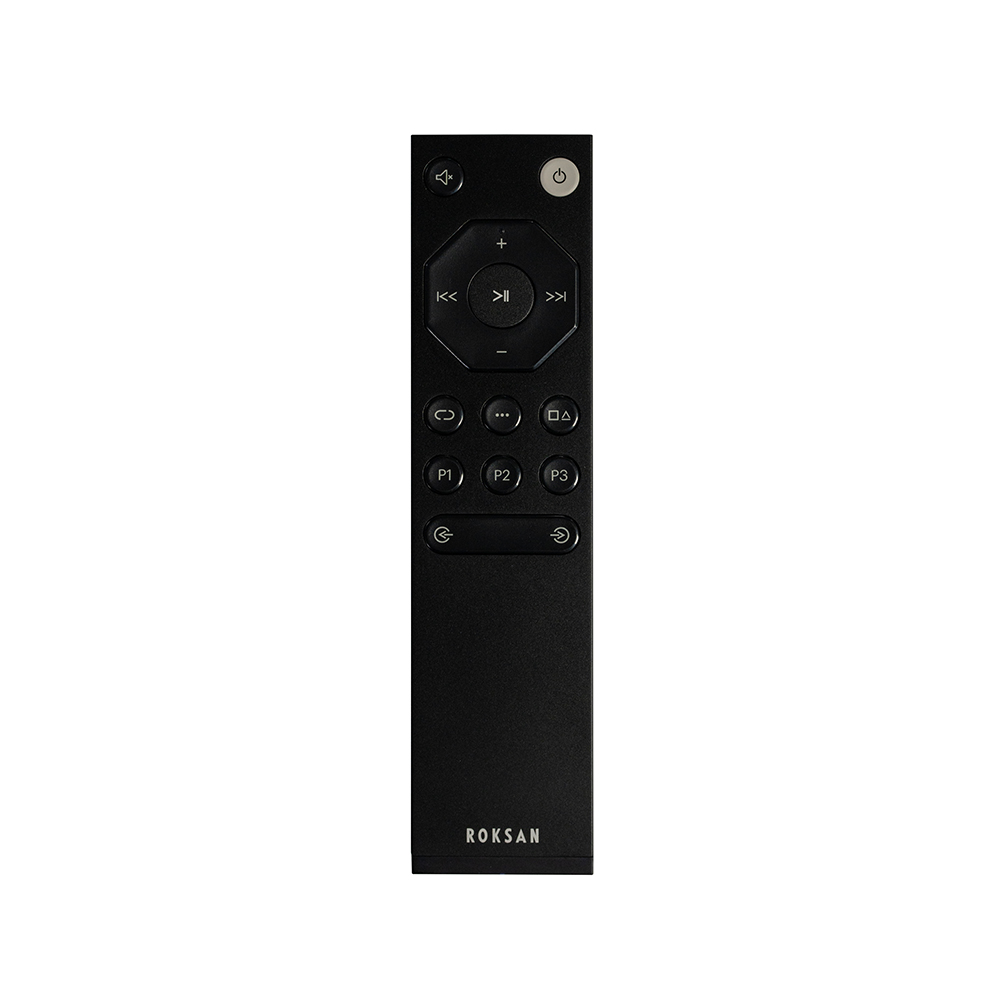 Roksan Caspian Streaming Amplifier i Integrated Amplifier dolaze sa elegantnim i praktičnim Roksan daljinskim upravljačem, koji omogućava korisnicima jednostavno upravljanje uređajem. Pažljivo dizajniran, ovaj ergonomski daljinski upravljač sa kućištem od ekstrudiranog aluminijuma savršeno leži u ruci. Tasteri su pregledni i intuitivni za upotrebu, olakšavajući navigaciju kroz ulaze, podešavanje unapred definisanih postavki i korišćenje svih standardnih funkcija uređaja.