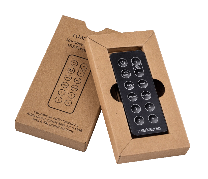 Ruark Remote Control opcioni kompaktni daljinski upravljač je praktičan dodatak R2-u i sa četiri direktne prečice omogućava brzo pristupanje omiljenim stanicama i plejlistama. Takođe je dostupna besplatna aplikacija za Android i iOS pod nazivom Oktiv, koja omogućava punu kontrolu nad R1S-om i posebno je korisna za pretraživanje radio stanica i podkasta.