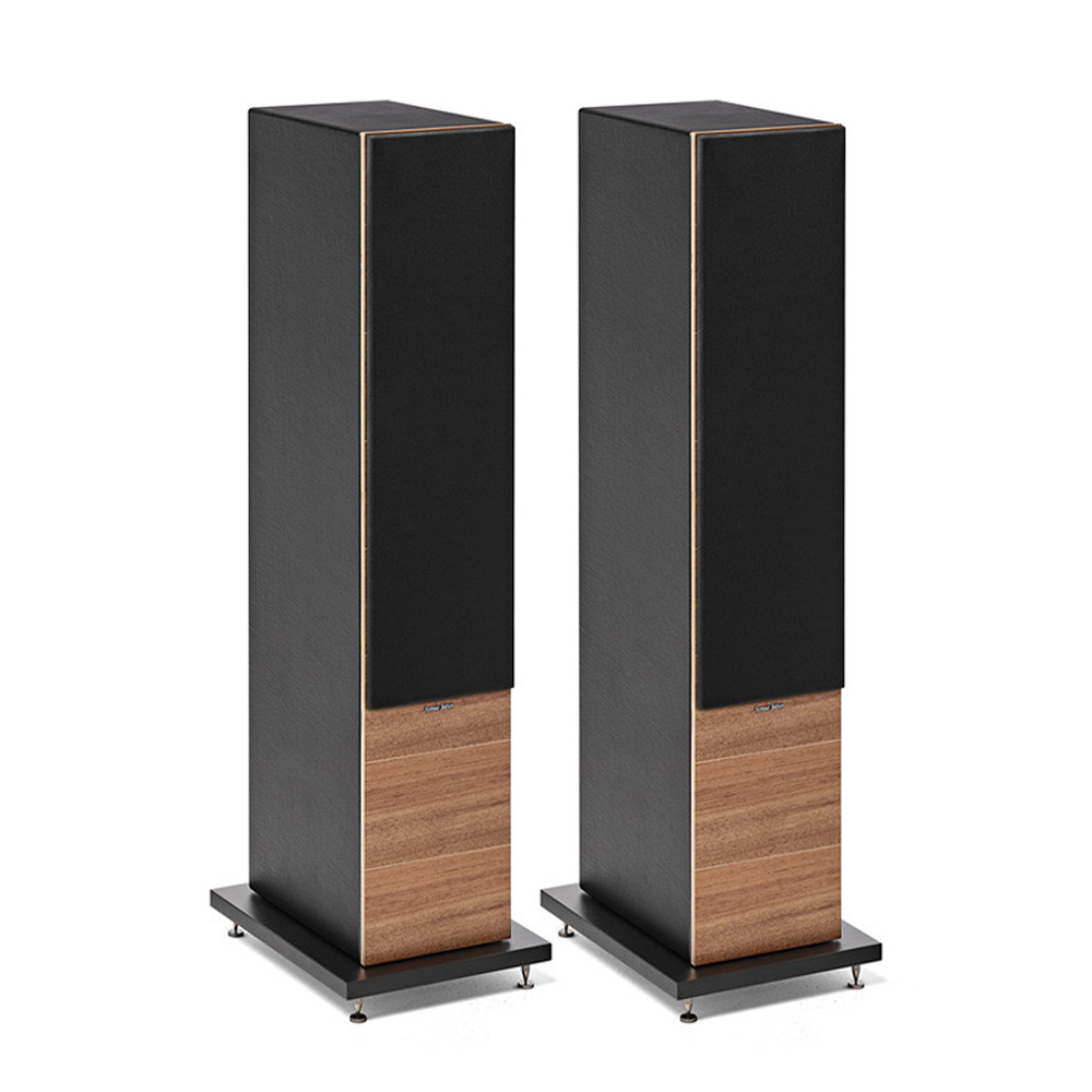 Lumina V koristi višeslojno drvo na prednjoj ploči, uz drveni furnir dostupan u više završnih obrada. Bočne stranice i gornji deo kućišta zvučnika ručno su presvučeni crnom kožom.