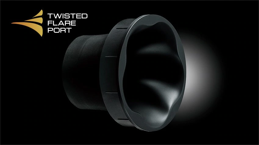 Sabufer koristi jedinstvenu Yamaha Twisted Flare Port tehnologiju, sa proširenim, blago uvijenim oblikom koji raspršuje vrtlog vazduha na ivicama porta i omogućava njegov neometan protok. Ovo smanjuje neželjene šumove koji nisu prisutni u originalnom signalu i omogućava jasnu i preciznu reprodukciju niskih frekvencija. Bilo da je reč o specijalnim efektima u filmovima ili muzici uživo, doživljaj basa je čist, kontrolisan i realističan.